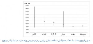 إنّ المعلومات التي تم جمعها تُظهر أنّ سلّة الغذاء في مناطق الأنبار ونينوى وكركوك تُكلّف أكثر بكثير مما هي عليه في بغداد والسليمانية، فسلّة الغذاء في الأنبار كانت أغلى بـ 66 بالمائة مما هي عليه في بغداد، في حين أنّ الفرق في نينوى وكركوك كان بين 25 و35 بالمائة. والطرق الرئيسية التي تربط الأنبار ونينوى ببغداد أصبحت غير صالحة للمرور بسبب الصراع، مما أثّر على تجهيز الغذاء.
