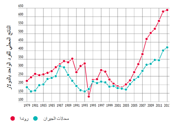 ( النمو الاقتصادي في رواندا والبوسنة مقارنة بدول الجوار )