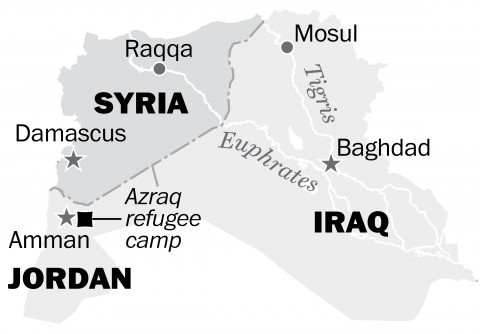 قال محمد أحمد، 43 عاما، وهو عامل سابق في جامعة الدول العربية من دير الزور، وهي بلدة قرب الرقة، عاصمة التنظيم في شمال سوريا “عدنا إلى العصر الحجري” واضاف “لقد كان لدينا منزل جميل مع أرضيات من الرخام والسيراميك”، واضاف أحمد الذي فر من منزله في شهر حزيران ويعيش الآن جنباً إلى جنب مع 20.000 الف سوري في مخيم الأزرق في الأردن. “خلال كل حياتنا، كان لدينا كل ما نحتاجه، ثم عندما جاءوا، بدئنا الطهو على نار في الخارج ونغسل ملابسنا في الدلو”.