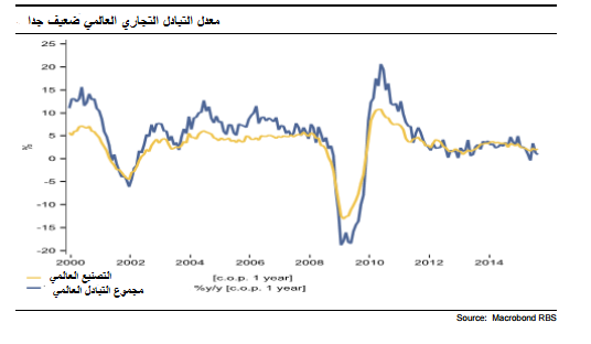 ادعى RBS سوف تستمر أسعار نفط برنت بالتراجع الى ما هو اقل من 34،40$ مع اشارات تدل على انه سيصل الى 16 $ للبرميل، وهو مستوى شوهد آخر مرة بعد أزمة شرق آسيا في عام 1999. قال البنك بان شلل أوبك يبدو عاجزاً عن الاستجابة إلى التباطؤ المتفاقم في آسيا، والآن الطلب العالمي البديل على النفط. كما خفضت مورجان ستانلي أيضا من توقعاتها النفطية، محذرتاً من أن برنت قد ينخفض الى 20 $ إذا ما استمر الدولار الأمريكي بالارتفاع، وقالت إن النفط يتأثر بالدولار ويلعب الآن دورا ثانويا لتأثيرات العملة. توقعات RBS أن عائدات ال 10 اعوام للسندات الألمانية ستنخفض لأدنى مستوياتها من 0.16pc في رحلة إلى بر الأمان، وربما تكسر الصفر مع ازدياد القوى الانكماشية، وسينخفض معدل سياسة البنك المركزي الأوروبي إلى -0.7pc.. ستنخفض سندات الخزانة الأمريكية إلى مستويات الحضيض، وهذا سيقلل من السندات الأمريكية الكثيرة جدا في “التبادل التجاري”.