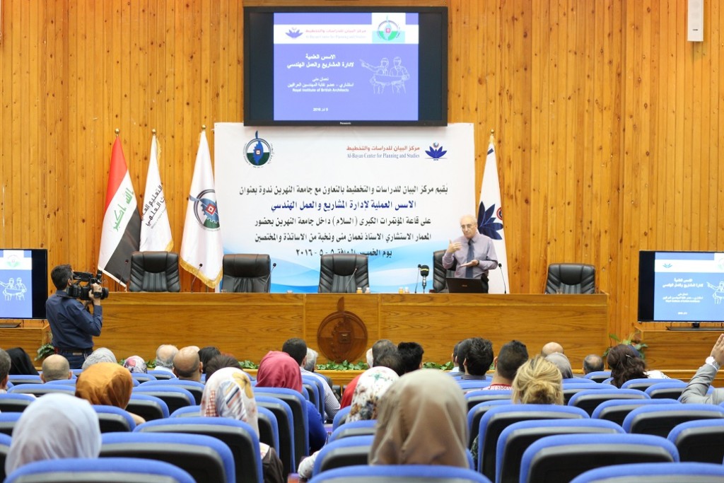 بعد صدور كتابه من قبل مركز البيان للدراسات والتخطيط، قدم المعمار الاستشاري نعمان منى ندوة عن الاسسس العملية والعلمية لادارة المشاريع والعمل الهندسي يوم الخميس المصادف 5 ايار 2016 على قاعة السلام في جامعة النهرين ببغداد.