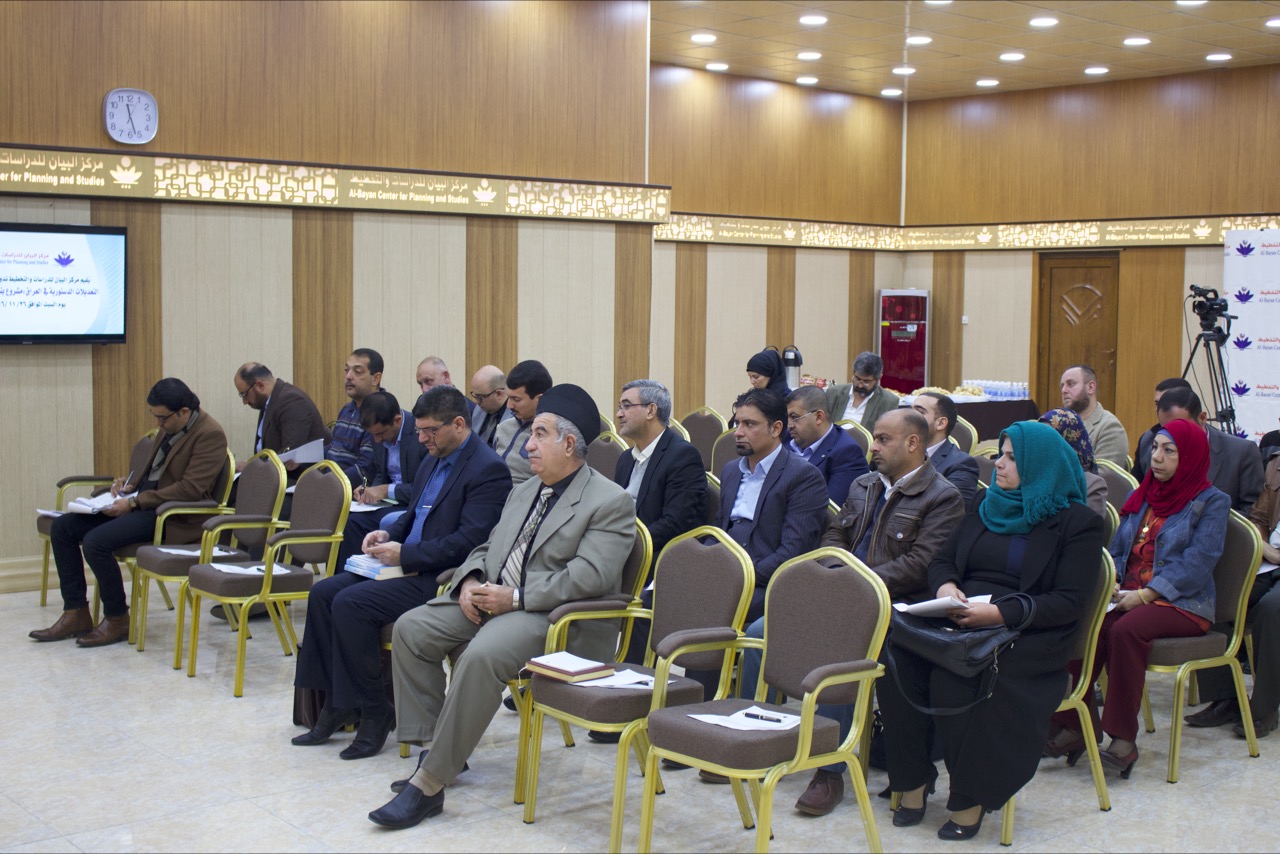 نظَّم مركز البيان للدراسات والتخطيط ندوة علمية بعنوان (التعديلات الدستورية في العراق مشروع بناء الدولة والمجتمع)، وذلك ضمن سلسلة ندوات المركز خلال العام 2016 الموافق يوم السبت 26/11/2016، وبمشاركة شريحة واسعة من المختصين والأكاديميين والمهتمين والمتابعين للشأن السياسي، ألقى خلالها الأستاذ الدكتور عبد الجبار أحمد عبد الله -عميد كلية العلوم السياسية في جامعة بغداد- محاضرة تمحورت حول إشكالية تطبيق التعديلات الدستورية التي ستساهم في بناء الدولة والمجتمع في العراق.