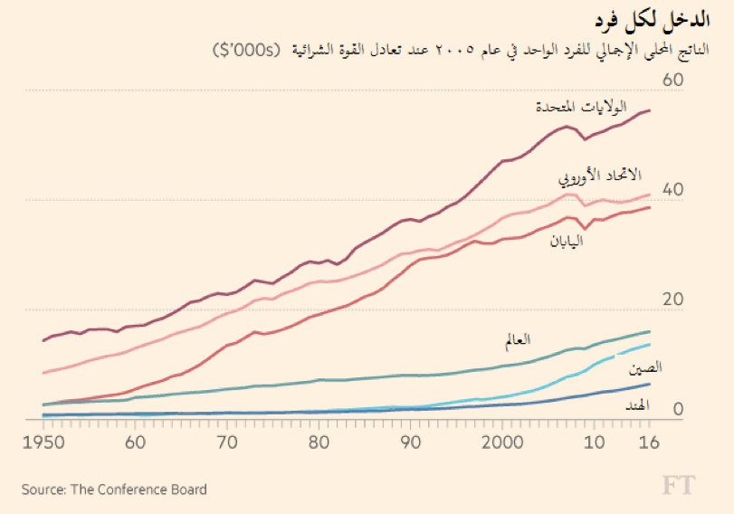 الأول: كان عهد الهيمنة الأمريكية بعد الحرب العالمية الثانية ناجحاً، إذ ارتفع متوسط الدخل الحقيقي العالمي لكل شخص بمعدل 460 في المئة بين عامي 1950 و2015، وانخفضت نسبة سكان العالم الذين يعيشون في فقر مدقع من 72 في المئة في عام 1950 إلى 10 في المئة في عام 2015.