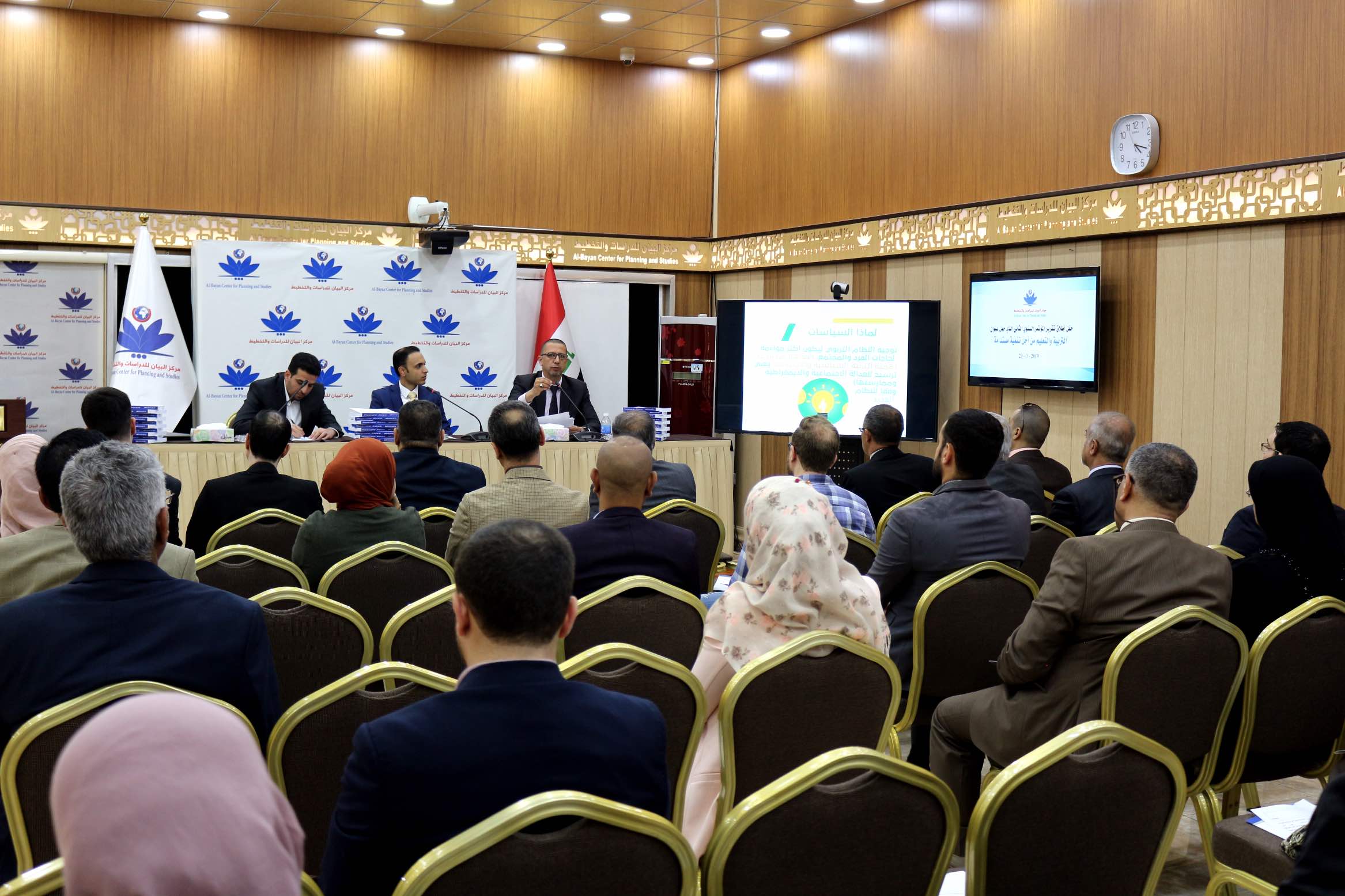 نظّم مركز البيان للدراسات والتخطيط ندوة حوارية لمناسبة إطلاق التقرير النهائي لمؤتمره السنوي الثاني الذي حمل عنوان: (التربية والتعليم من أجل تنمية مستدامة)، يوم السبت الموافق (23 آذار 2019). وقد حضر الندوة عشرات من الباحثين والمهتمين بالشأن التربوي والتعليمي في العراق، فضلاً عن مسؤولين ومعنيين في وزارة التربية.