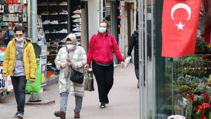 ولم تكن تركيا محصنة ضد هذه الجائحة وكانت واحدة من الدول العشر الأولى في العالم من حيث عدد الإصابات بجائحة كوفيد-19، بحيث بلغ عدد المصابين 95646 حالة، وعدد الضحايا 6091 حالة، وعدد الأشخاص الذين تم شفاؤهم 76318 حالة حتى الثاني من شهر أيار. لقد أعلنت تركيا أول حالة إصابة جائحة كورونا في 11 آذار، وأول حالة وفاة في 17 من الشهر نفسه؛ ولذلك اتخذت الحكومة تدابير مهمة وواسعة الانتشار في جميع أنحاء البلاد بسبب تفشي هذا الوباء، ومن ضمن هذه التدابير: فرض قيود على حركة المرور في المدن، وحظر السفر بين المحافظات، وفرض حظر تجوال على المسنين ممن تتجاوز أعمارهم 65 عاماً، والإغلاق الكامل للرحلات المحلية والدولية، والتبرعات النقدية للأسر ذات الدخل المنخفض، وتوفير التسهيلات للشركات المتضررة، وزيادة رواتب الموظفين والمتقاعدين، وإغلاق المدارس والجامعات، ومراكز التسوق والمكاتب الحكومية، وتوفير مساعدات غذائية لجميع المواطنين. وأعلن أردوغان أن الحكومة ستواصل الإجراءات والقيود للسيطرة على جائحة كورونا حتى نهاية شهر رمضان المبارك. وعلى وفق بعض المراقبين، فإن الحكومة التركية أخفت قضية تفشي جائحة كورونا لكنها اضطرت بعد ذلك إلى الإعلان عن المرض بعد الزيادة التي حصلت في عدد المرضى.