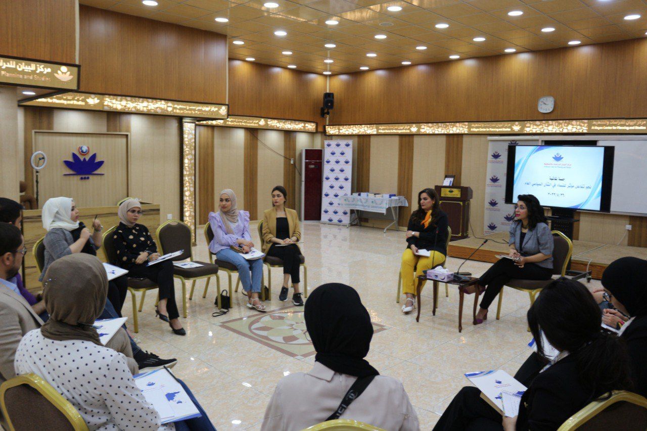 وتناولت الحلقة النقاشية (المعوقات) التي تواجه النساء الشابات في الانخراط بالشأن السياسي العام، و(الحلول) لتلك العقبات من وجهة نظرهن. وشملت الحلقة عرض دراسة أعدّها قسم الدراسات الاجتماعية في مركز البيان للدراسات والتخطيط حول المشاركة السياسية للنساء في الانتخابات العراقية السابقة والبيئة الانتخابية المحيطة بهن.