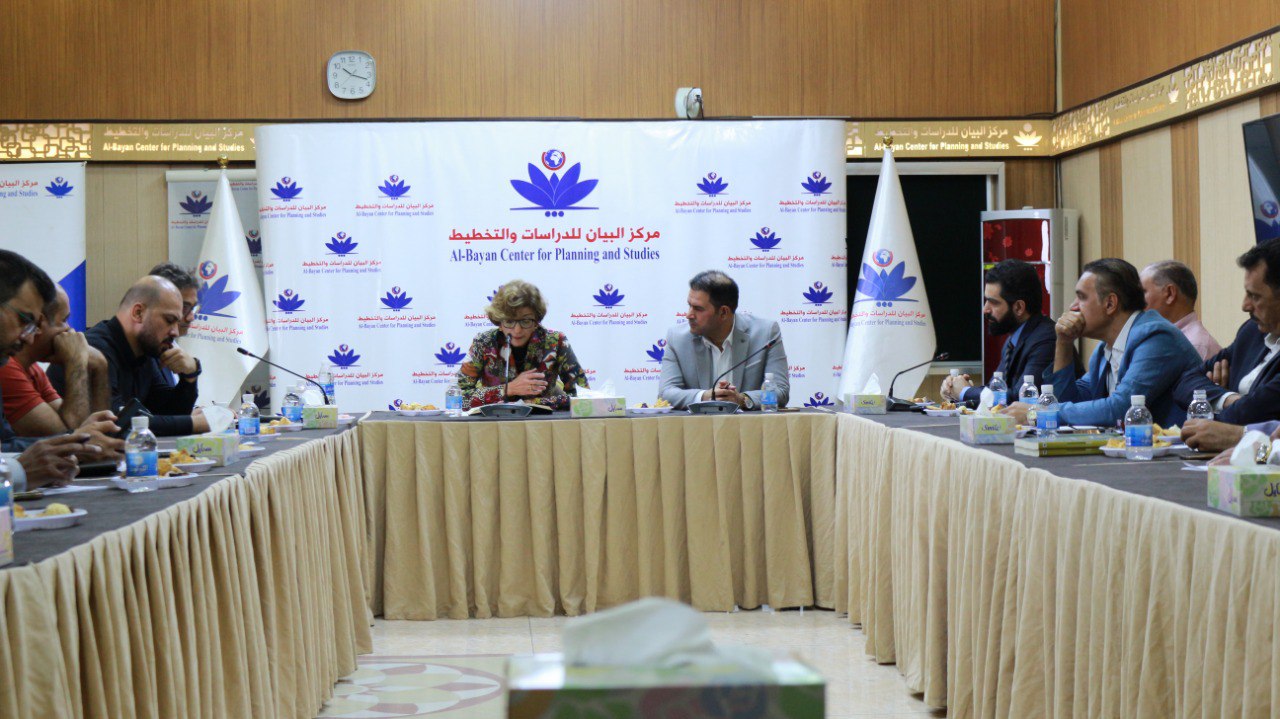 عقد مركز البيان للدراسات والتخطيط جلسة نقاشية تحت عنوان: “العراق في أزمنة الحرب”، بحضور الدكتورة دينا رزق خوري أستاذة تاريخ الشرق الأوسط بجامعة جورج واشنطن الامريكية.