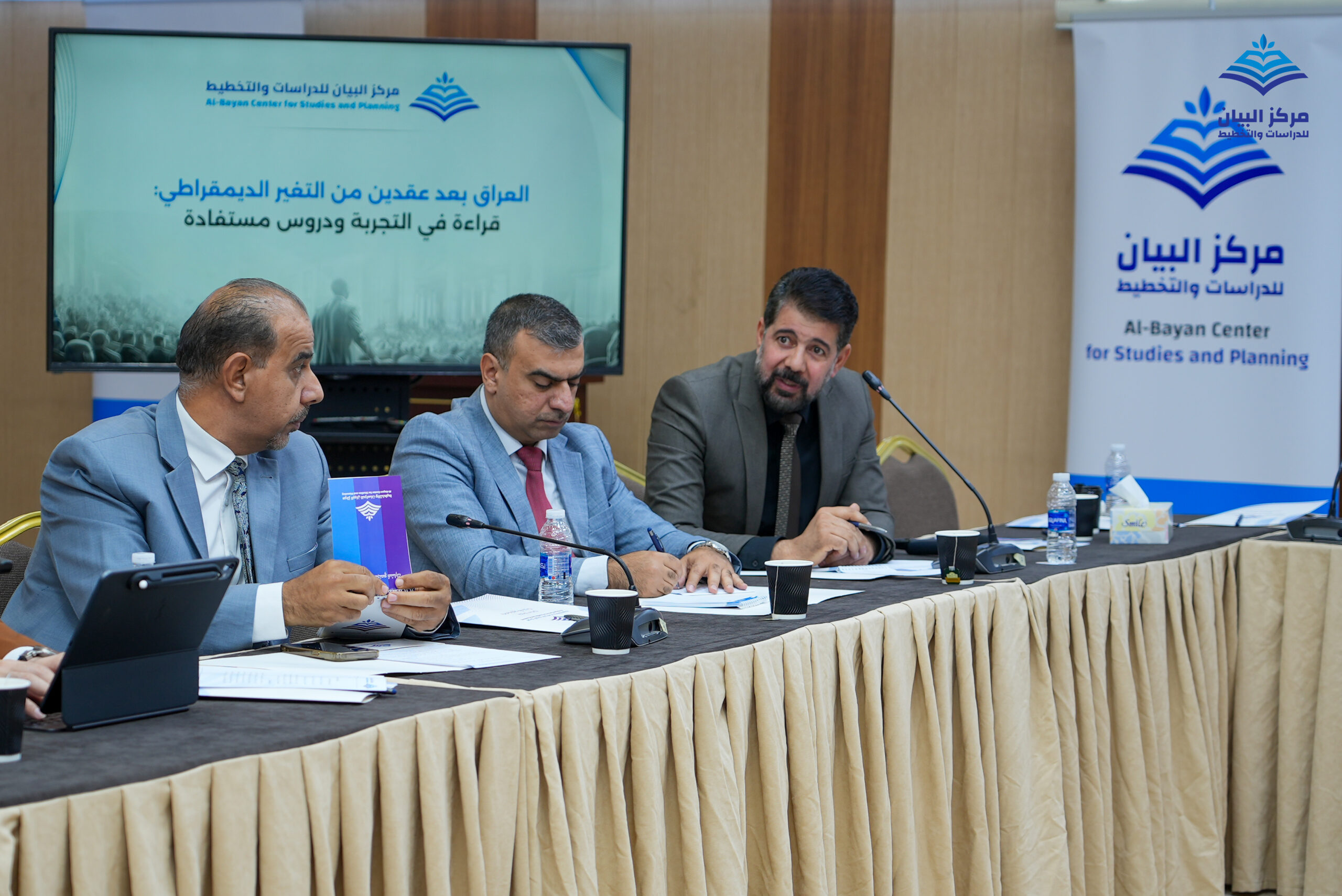 عقد مركز البيان للدراسات والتخطيط جلسة نقاشية حضرها ممثلو واعضاء في أحزاب وتيارات سياسية ومسؤولين ورؤساء مراكز التفكير واكاديميون مختصون.