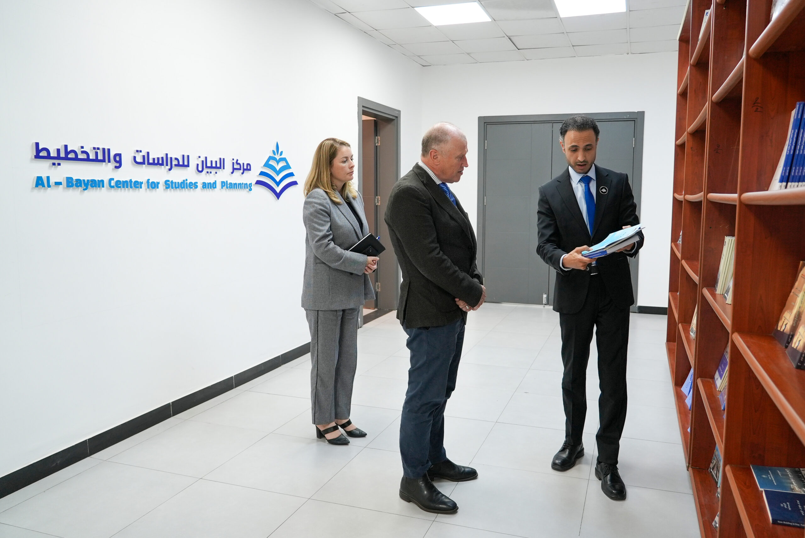 كما اطلع السفير الاسترالي على نشاطات المركز وإصداراته المختلفة، مبديا سعادته بالدور الذي يلعبه مركز البيان في إثراء الحوار الفكري وتقديم الدراسات والتحليلات المعمقة حول القضايا الهامة في العراق.
