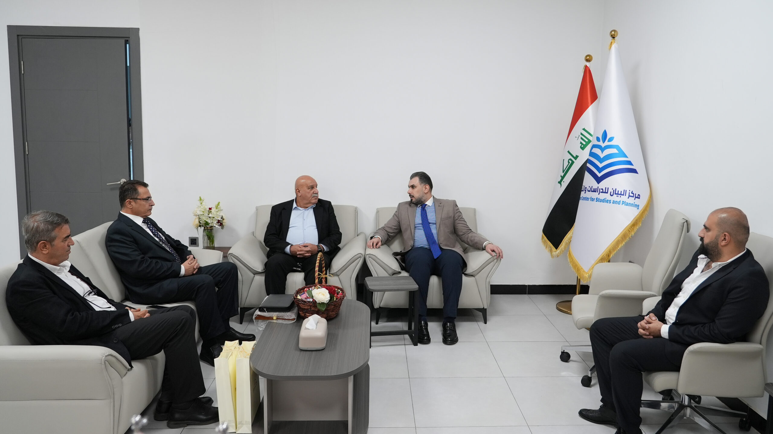 استقبل مدير قسم الأبحاث في مركز البيان للدراسات والتخطيط، السيد مصطفى السراي، وفداً من مؤسسة رؤية للدراسات الاستراتيجية في السليمانية، برئاسة السيد عدنان عثمان رئيس المؤسسة، والوفد المرافق معه، السيد جبار ياور، والسيد آرام إسماعيل سعيد، والدكتور مريوان جبار.