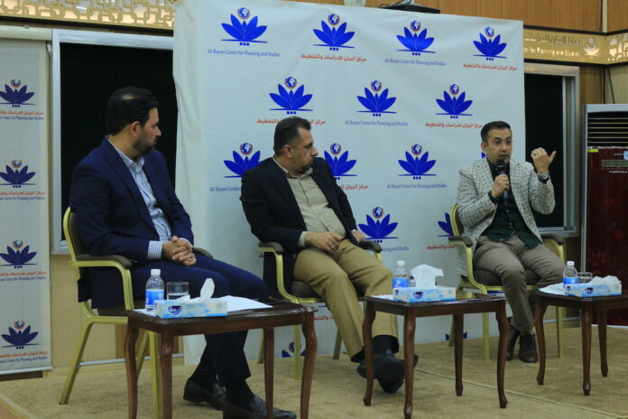 Al-Bayan Center for Planning and Studies, based in Baghdad, held its third symposium, entitled “Upcoming parliamentary elections: Options for Participation and Boycott” In the presence of Fadi Alshamri, member of the National Wisdom Movement political bureau, and Dr. Ayad Anber, academic and political activist.