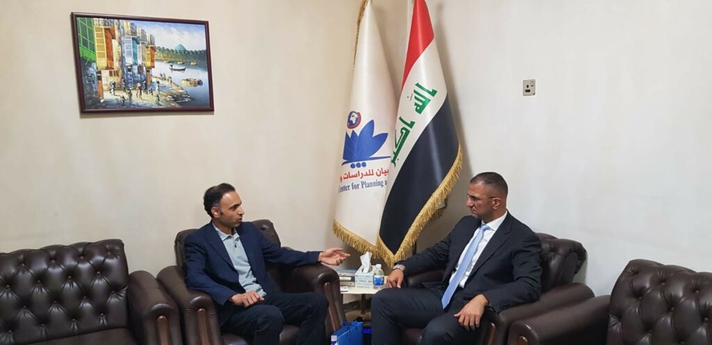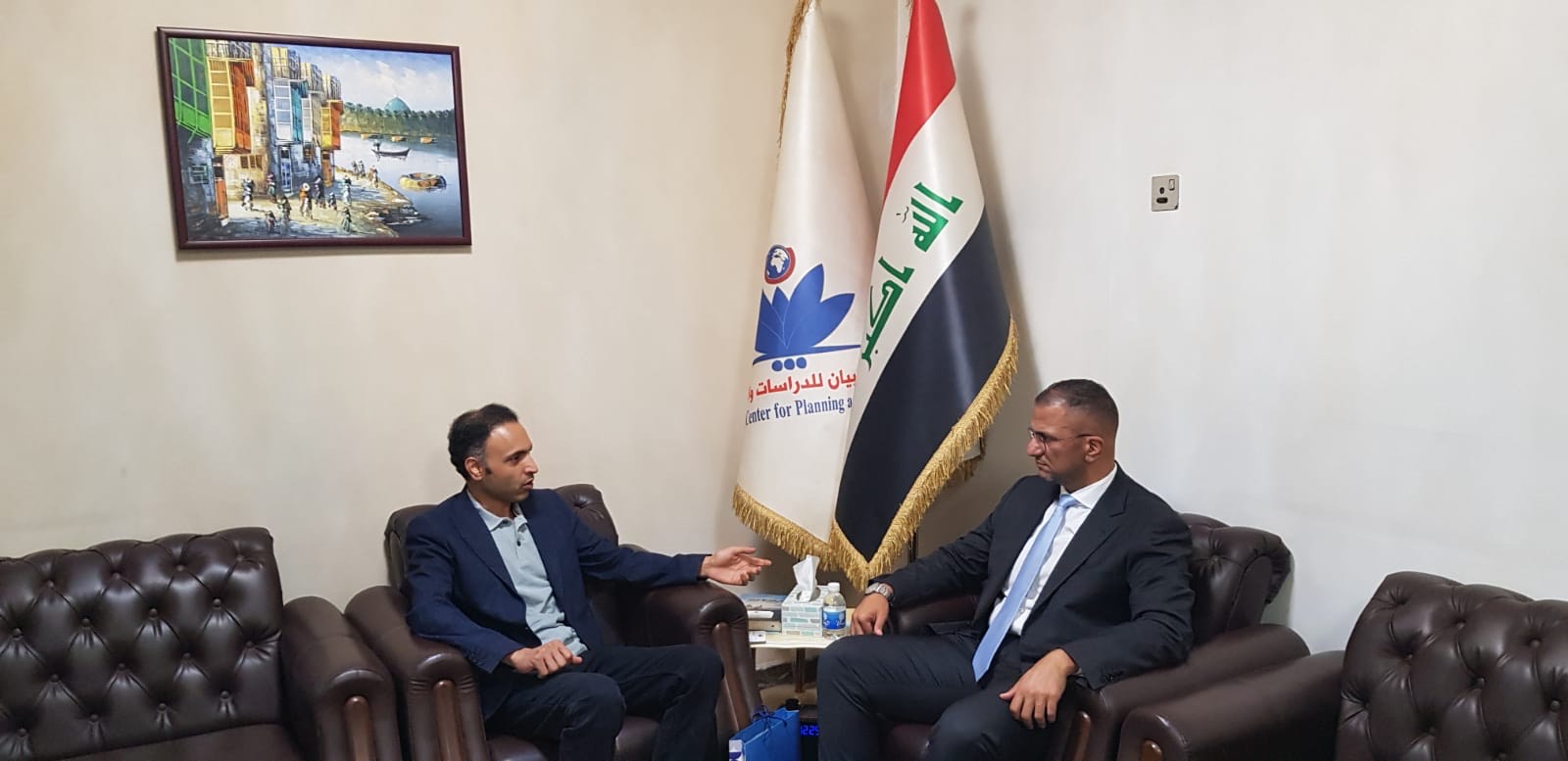 The Executive Director of Al-Bayan Center for Planning and Studies, Dr. Ali Taher Al-Hammood, received the President of the Syrian “Dimensions for Strategic Studies” Mr. Mohammad Al-Sarmini, and his accompanying delegation.