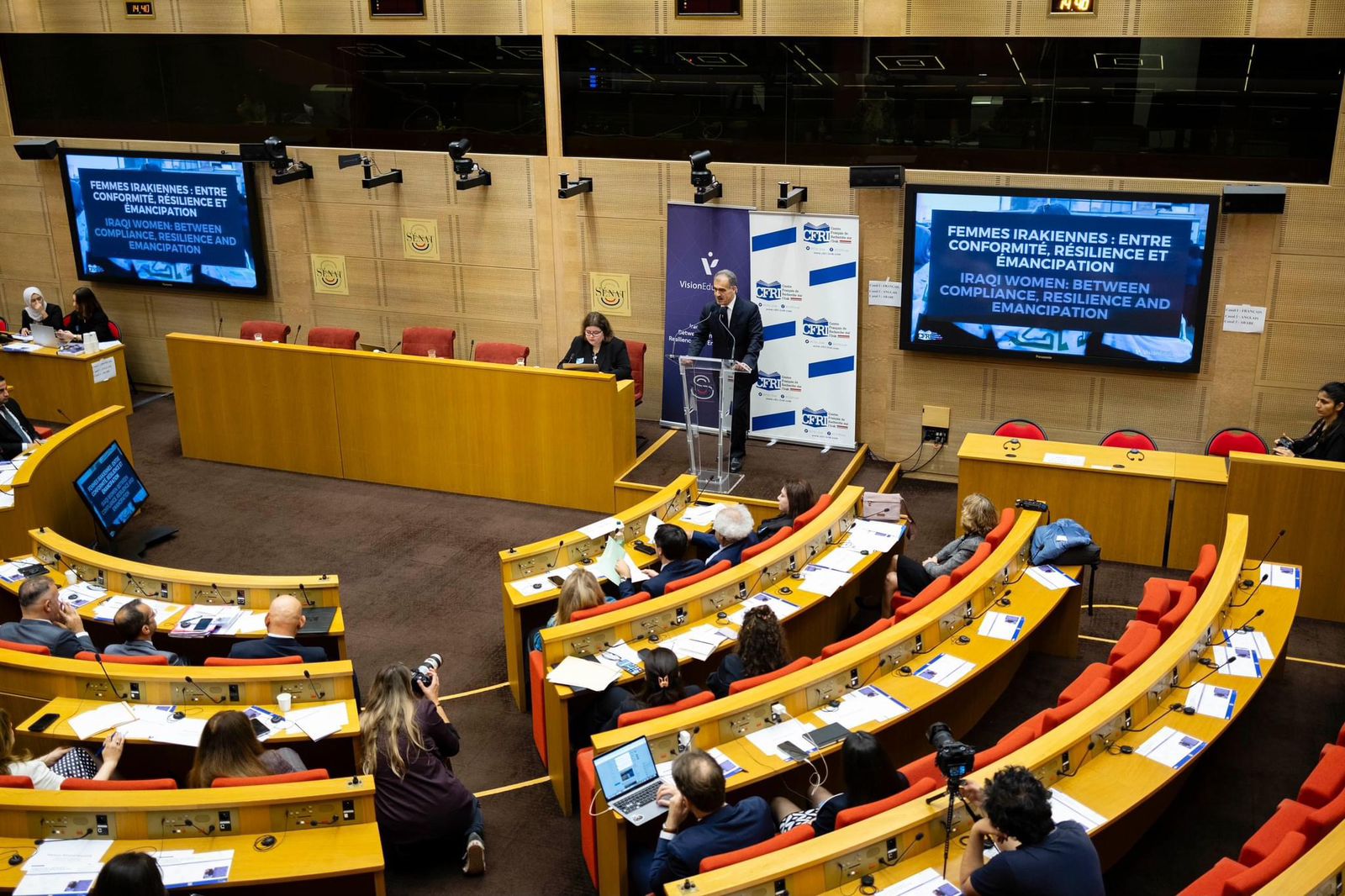 Hayam Ali Al-Marhaj, Director of the Women’s Studies Department at Al-Bayan Center, presented a research paper on the challenges facing Iraqi women in the political process and ways to enhance their participation in the public sphere. The conference was organized by the French Center for Studies on Iraq (CFRI) in cooperation with Vision Education, and was held at the French Senate in Paris, under the title: “Iraqi Women between Conformity, resilience, and Emancipation.