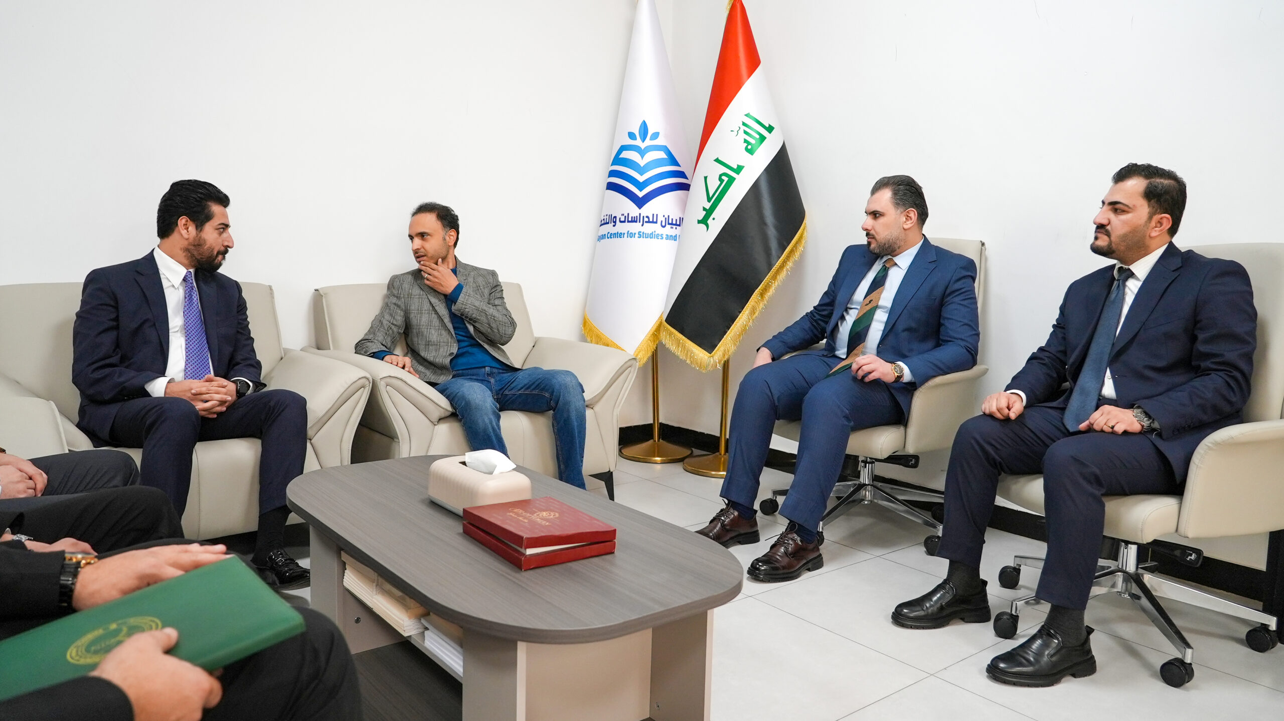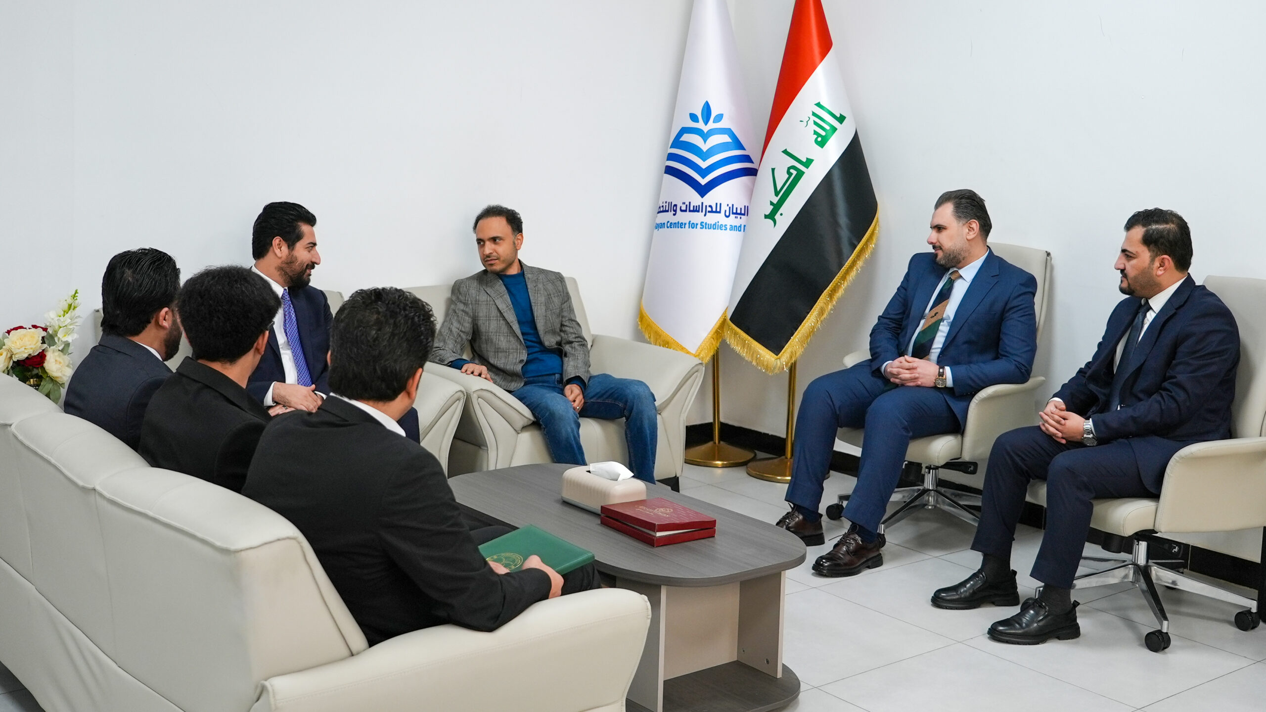 Al-Bayan Center for Studies and Planning received the official spokesperson of the Patriotic Union of Kurdistan, Karwan Kaznayi, within the framework of enhancing political dialogue and exchanging perspectives on national and regional issues.